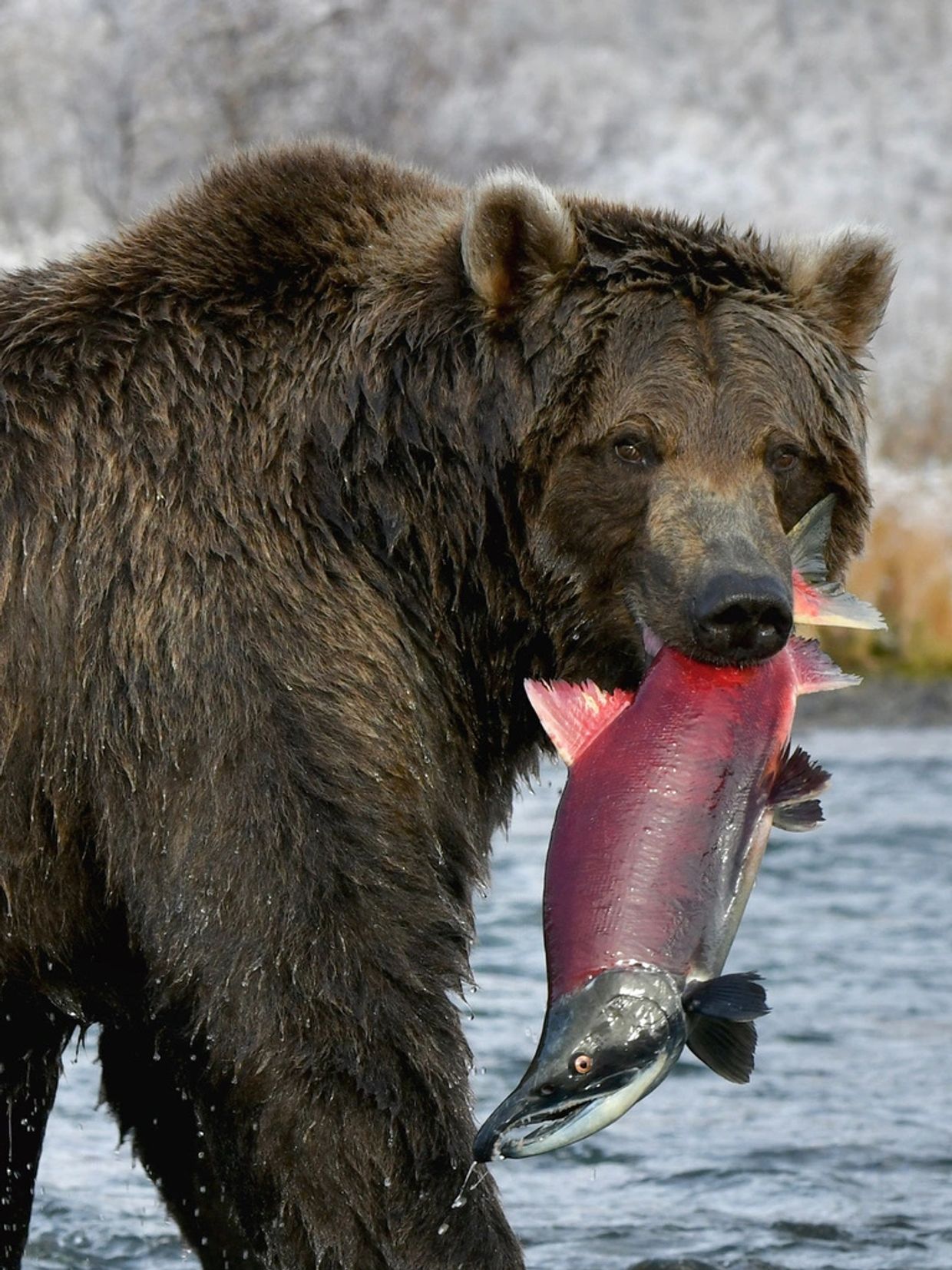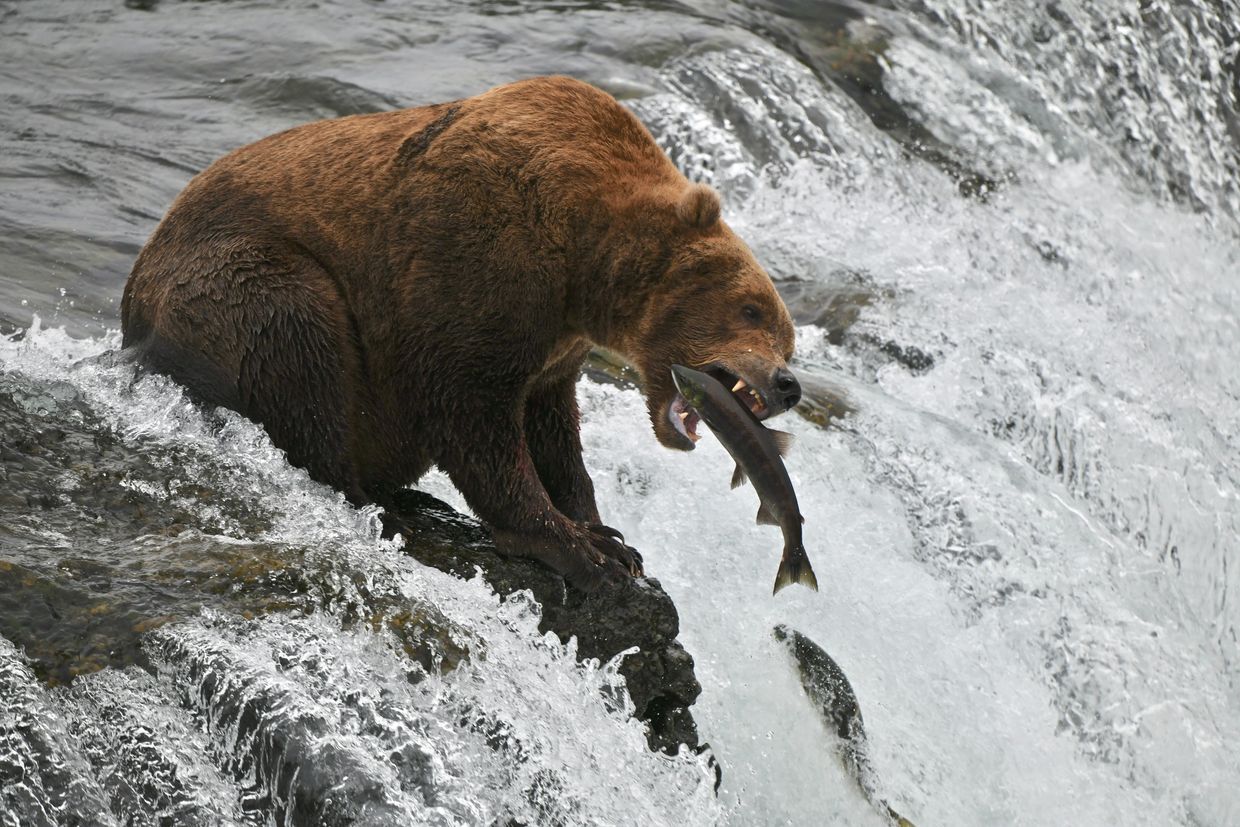 During the peak of the red, or Sockeye salmon run, around mid July, as many as 15-50 bears may congregate at Brooks Falls and along the Brooks River. This area is closely monitored by the National Park Service to provide a safe environment for bear viewing. There is a half hour safety orientation at the ranger station prior to setting out on the trail.